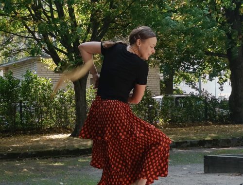 Flamencon lisäksi Erika on sertifioitu TRE® -ohjaaja sekä Liike virtaa -ohjaaja.